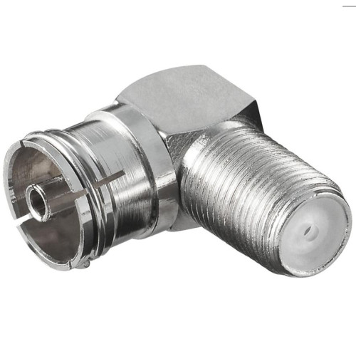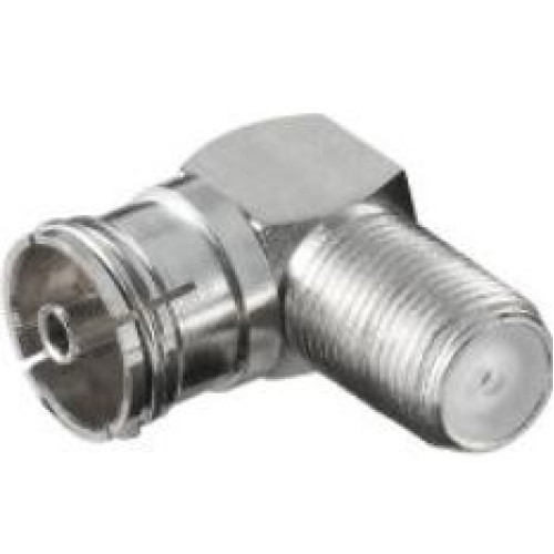 Adapter/konektor KOTNI (90°) F ženski na TV ( IEC) ženski. ( IEC konektor, 9.5mm ) Impedanca: 75Ohm
